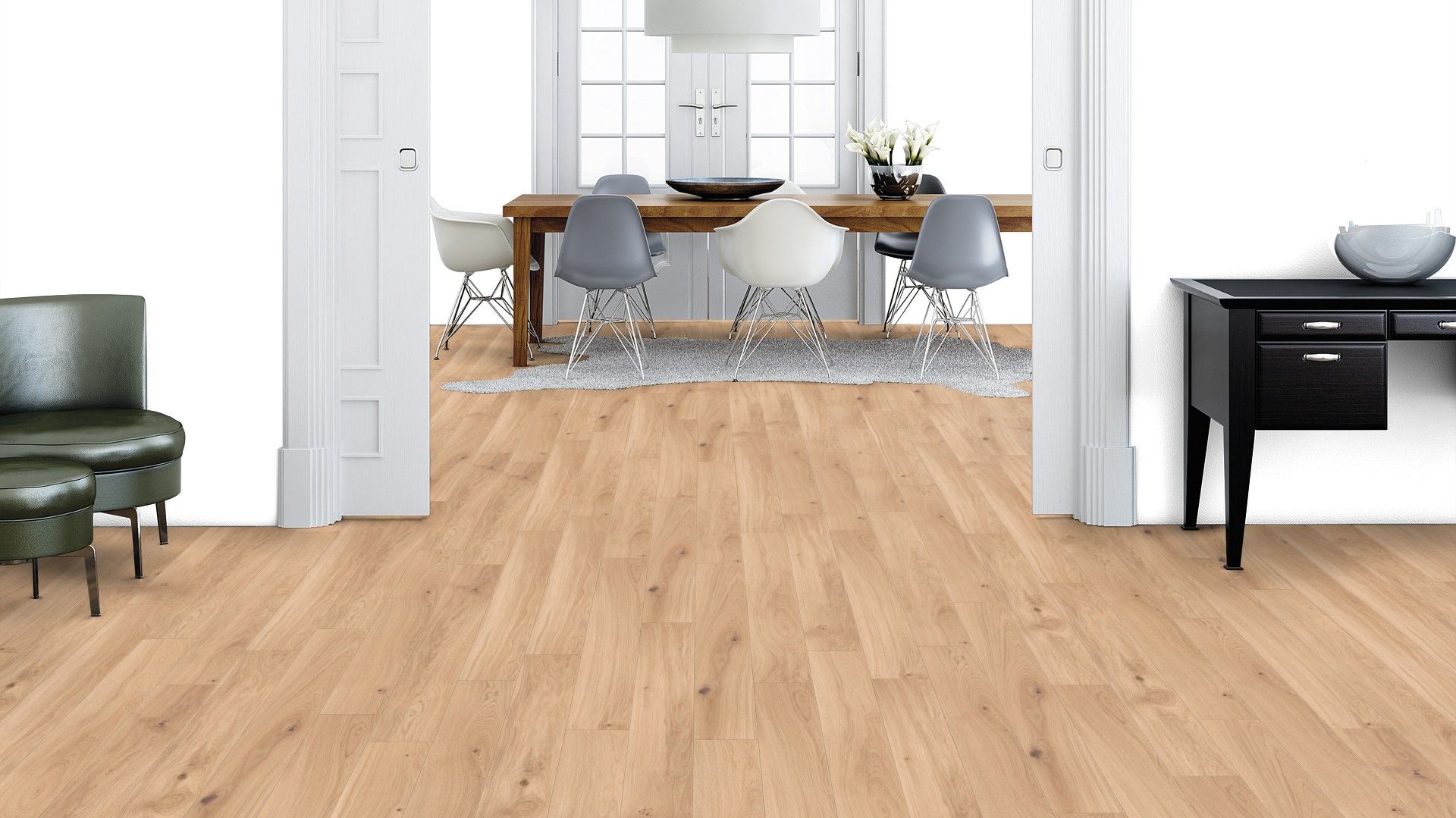 2-Schicht Fertigparkett zur vollflächen Verklebung inLandhausdielenformat, gebürstet,gefast und natur geölt